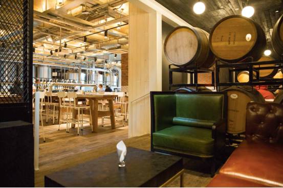 美式复古的工业装修风格,1200平空间超级大,高脚凳和软沙发各式座位共有220个,非常适合朋友齐聚,把酒言欢大快朵颐。