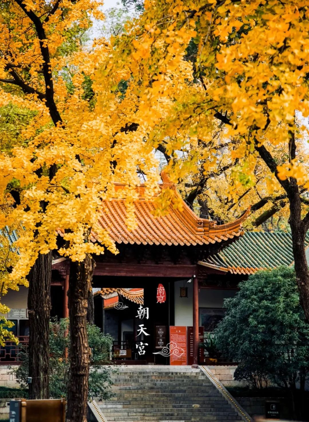 小红书©️新向芽RAY红墙琉璃瓦的朝天宫,被银杏的点缀后尽显秋的姿色。镶嵌于千株梧桐树中间的美龄宫,更像是南京写给秋天的一封情书。