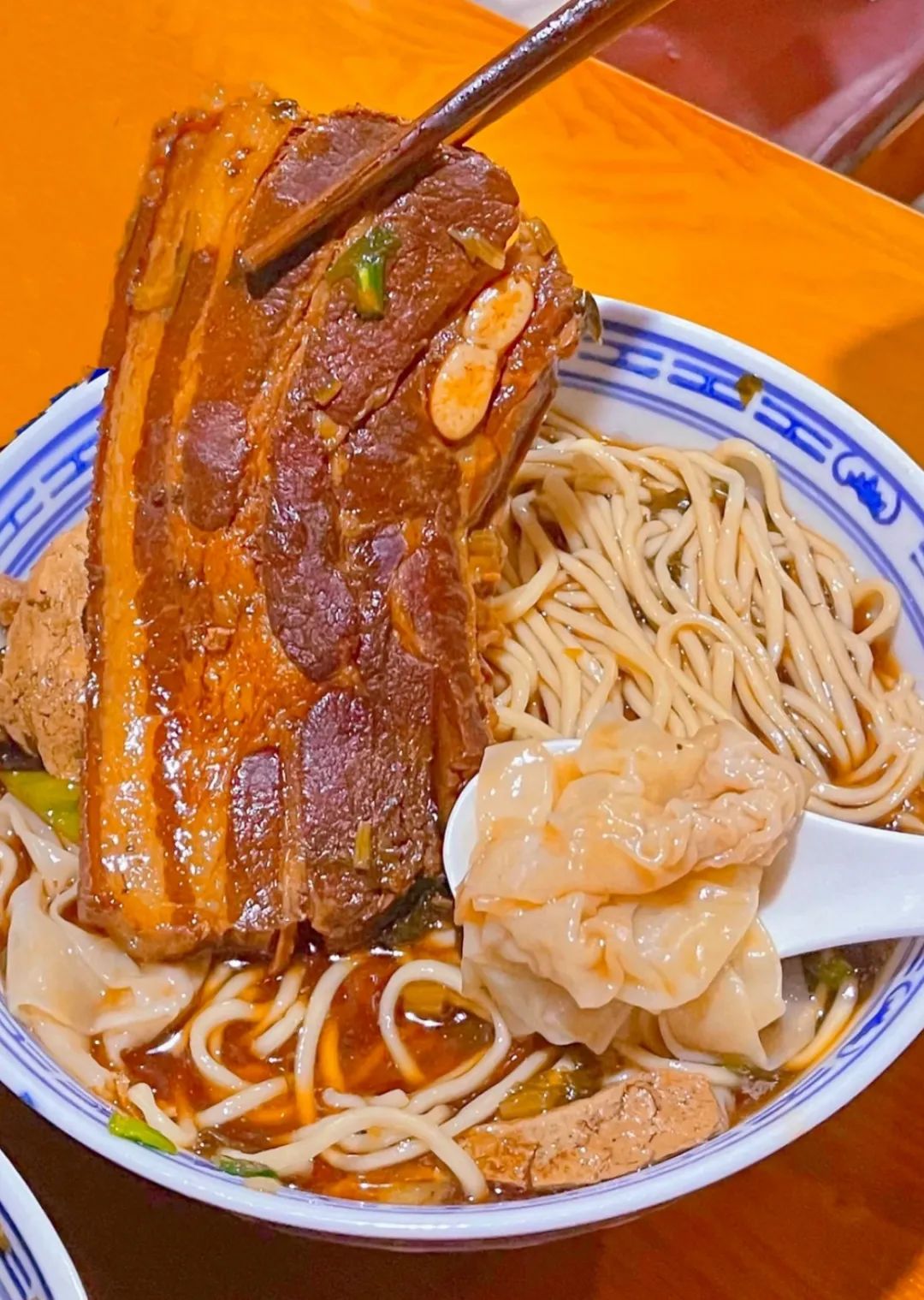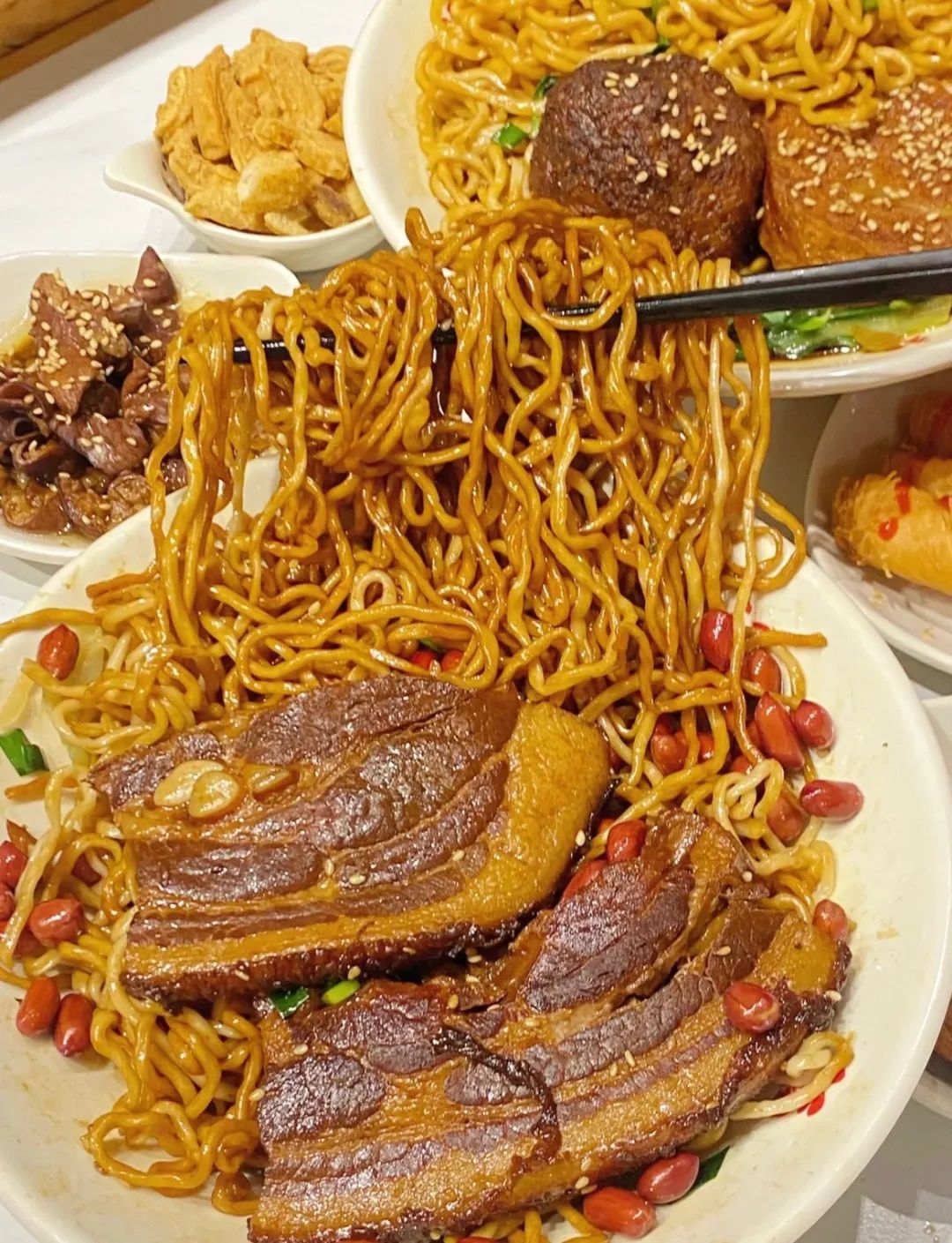 老卤的赤色,渲染着每一根面条,一口吸入,味蕾便开启一场狂欢。
