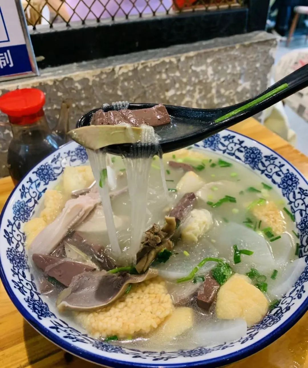 这碗鸭味浓郁,汤汁鲜掉眉毛,粉丝柔韧的鸭血粉丝汤是纵横金陵城的灵魂。