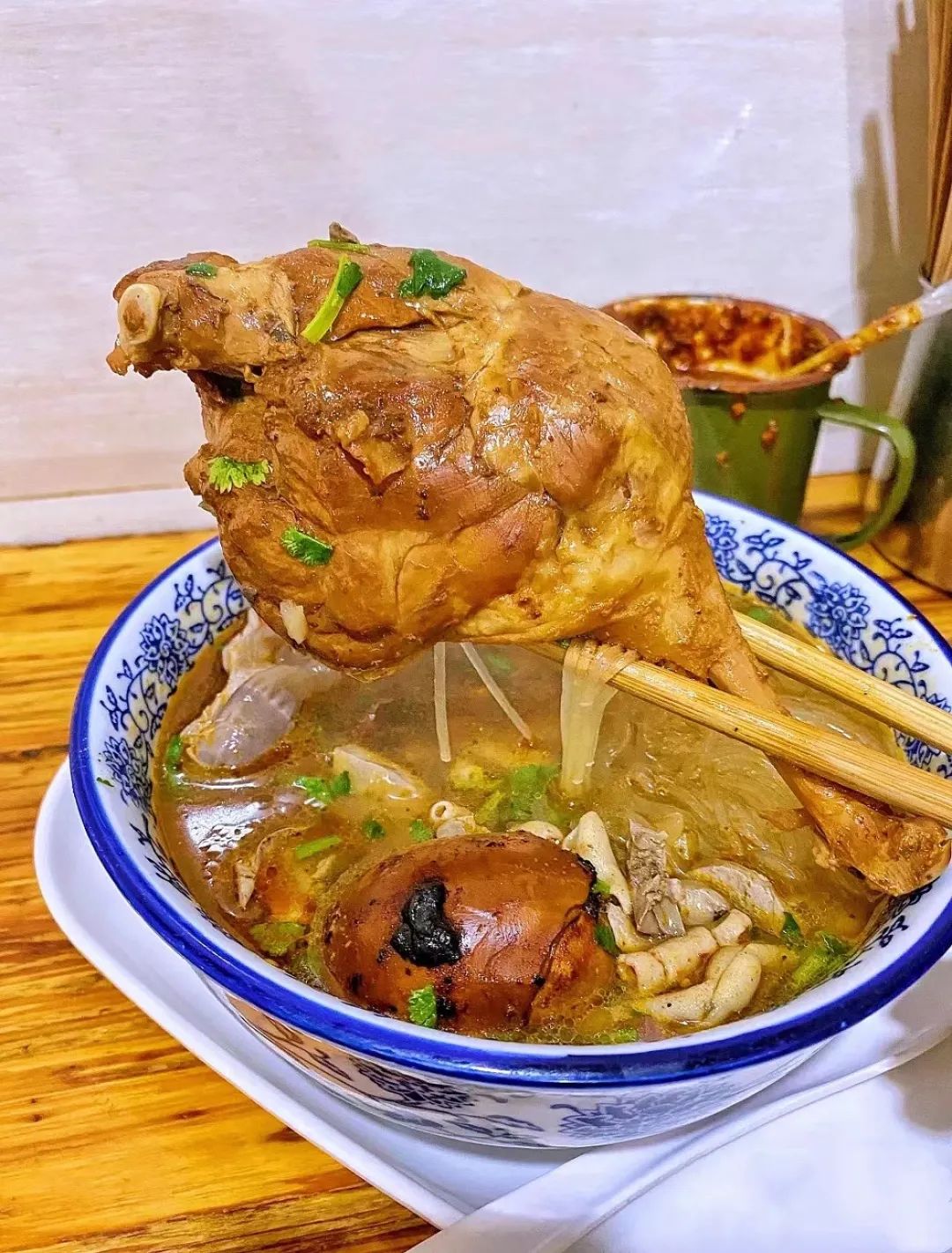 小红书 ©️_GnR好的鸭血粉丝不需要提鲜剂,单是自身的味道就足够了,唆粉的同时,再加一块大鸭腿,胃就立即被拿捏住了。
