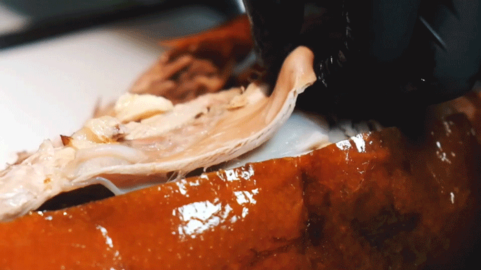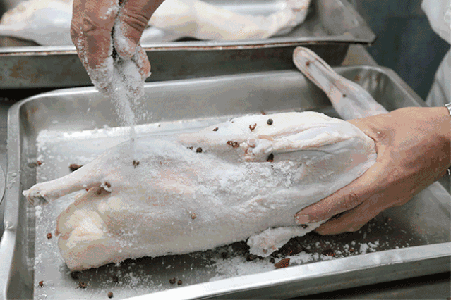 金陵烤鸭的精髓,就在那酸甜适口的秘制红卤,单是卤汁,就会加上十余种香料,使其香气四溢。