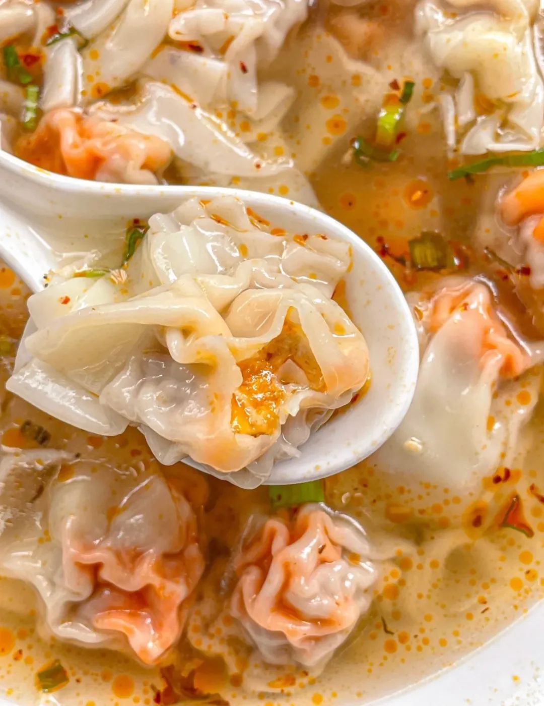 小红书©️大妮吃之前,可随意的撒上葱花、紫菜、香菜碎,如果再舀上一勺辣油,一碗汤汤水水又热辣的小馄饨,太抚人心。