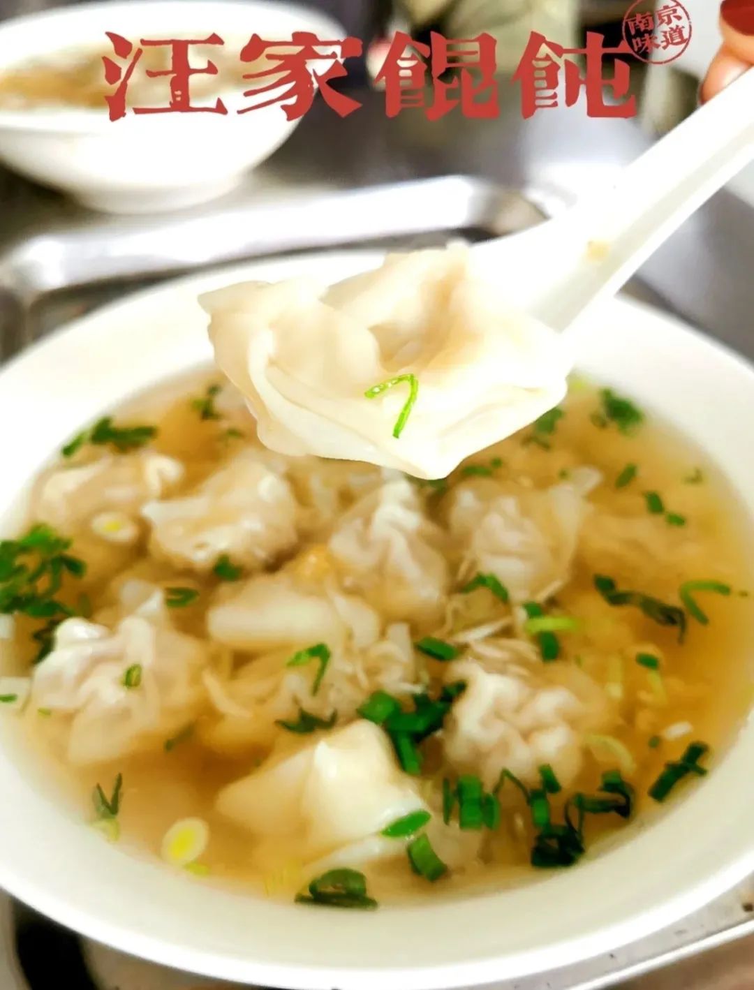 南京的扁食,就是小馄饨的天下,薄如蝉翼的面皮,加上紧致的鲜肉馅,再配上猪大骨熬制的浓汤汤底,清淡之中,尽显鲜味。