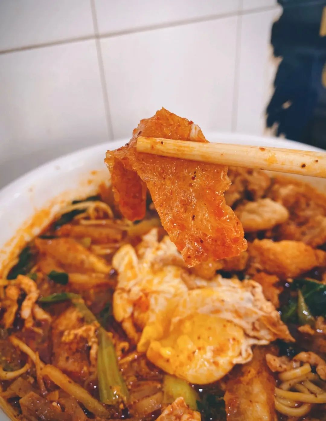 馄饨的汤底尤其浓郁,皮儿薄到透明飘逸,吃之前,点上一份酥酥脆脆的锅巴,让其泡在馄饨汤里,等吸收汤汁后,再一口吃下,妙不可言。