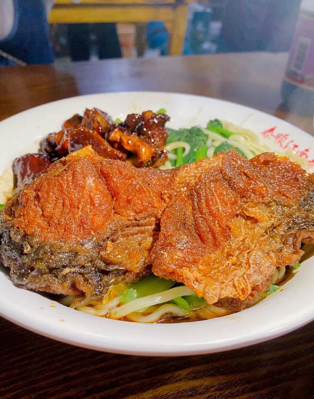 还有巴子面馆的皮肚面,一碗里是“百花齐放”。用猪油煎炸后的皮肚,脆香又松泡细软,再裹着小青菜、干丝、雪菜等一口吃下,又怎么会不满足。