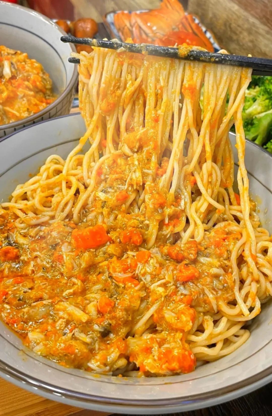 错过了秋天的蟹黄捞面,就错过了南京秋天美味的精华。整整10多只蟹做成的蟹黄浇头,金灿灿的感觉在发光、流油,食欲感炸裂。