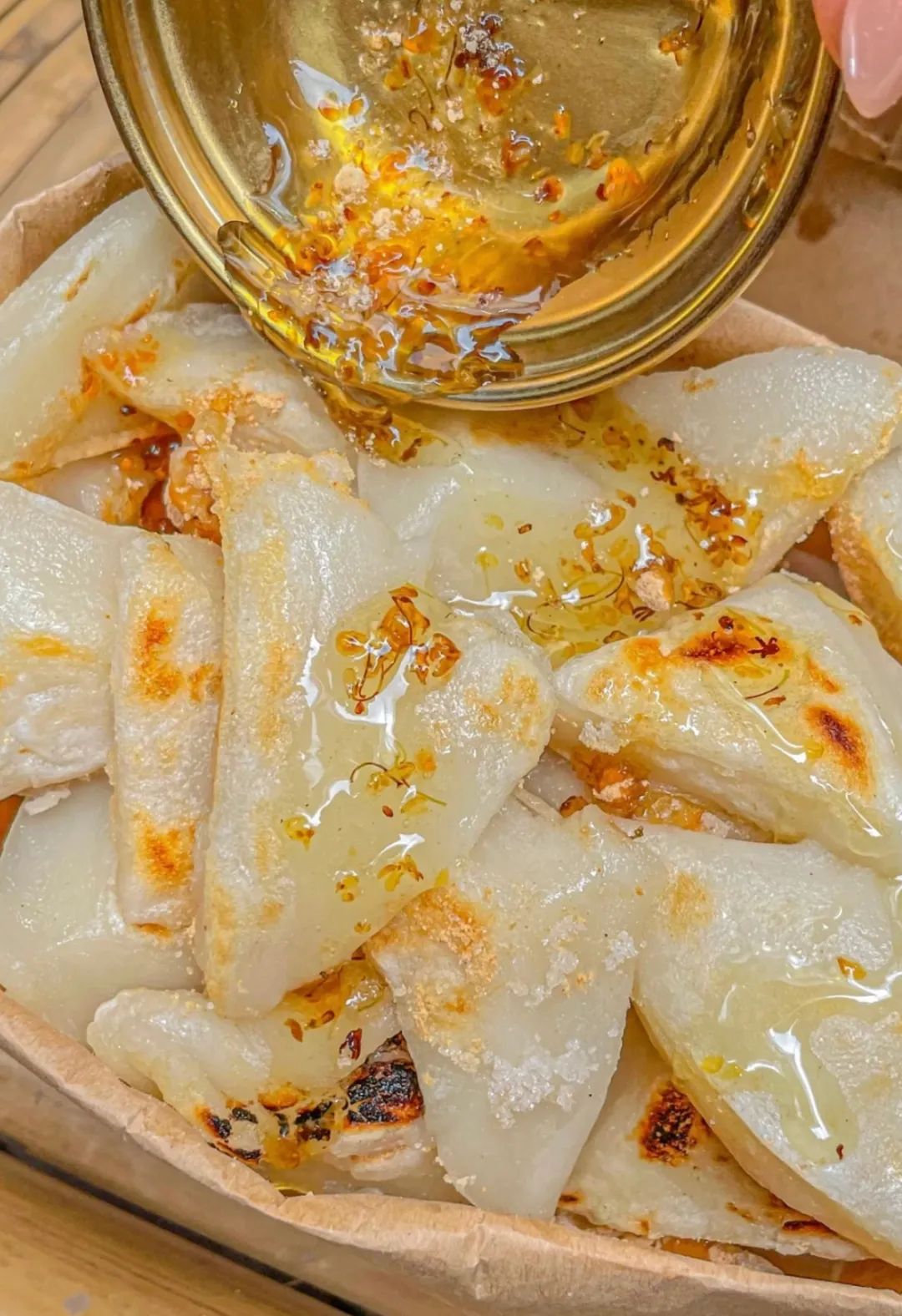 在秋日渐凉的时候,吃一份现烤的桂花年糕,真的不要太暖和。