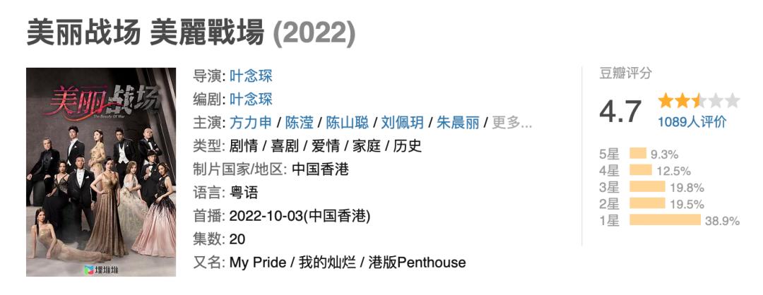 TVB最近还有一部主推的台庆剧《美丽战场》,
