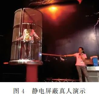科学与迷信,其本质区别就是科学可以用实验验证,而迷信无法用实验验证。为了证实理论的正确性,给学生播放静电屏蔽真人演示视频(如图 4),让学生感受到科学的无穷魅力。由于学校实验器材充足,因此设置学生实验,让每一个学生都体验一下尖端放电现象(如图 5)。
