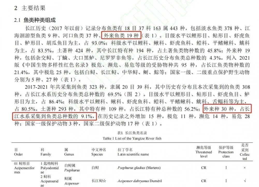 近日,《水产学报》刊发的最新论文《长江水生生物资源与环境本底状况调查(2017—2021)》(简称“长江专项”)显示,2017—2021年共采集到鱼类323种,其中外来种30种。而2017年以前,长江历史记录分布鱼类中,外来种为19种。
