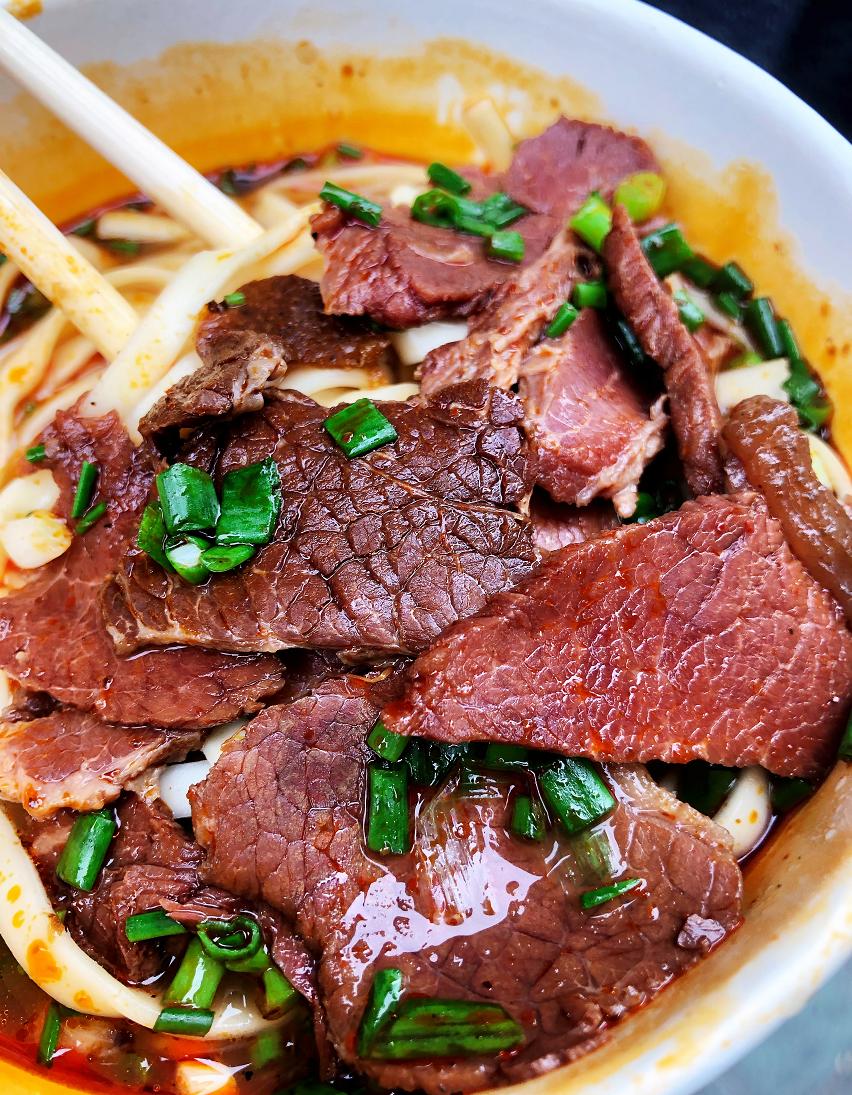 那碗又鲜又麻又辣的汤实在才是精华,哪怕简单的加上豆腐海带都足以惊艳,配上特色卤制的牛肉牛杂更是锦上添花,尤其是厚厚的一层牛肉铺在上面,看了就让人胃口大开。也让第一次吃襄阳牛肉面的外地人直呼“襄阳的牛肉是不要钱吗?!”
