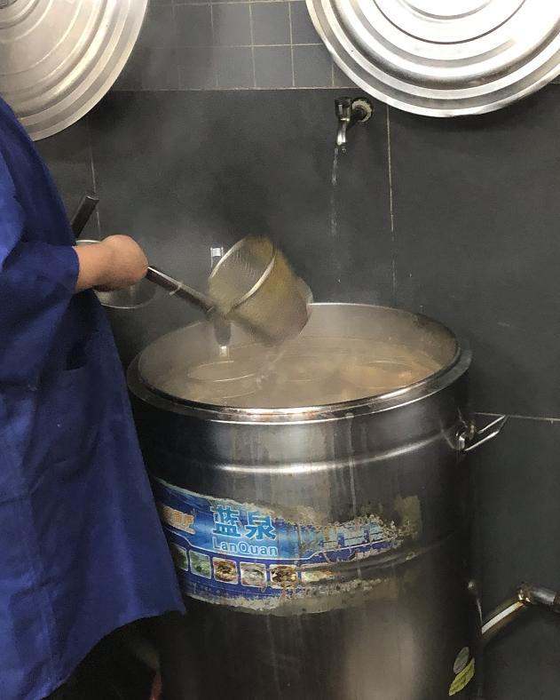 牛肉面做法很简单,水开后先在漏网里铺上新鲜的豆芽,再放上面,伸进水中冒热,然后加上熬好的牛肉、牛杂及其他佐料即可。