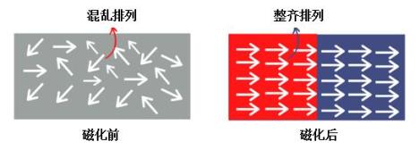 当物质分子的总磁矩不为零时,分子就具有磁性。但在一般情况下,由于分子的取向是混乱的,分子磁矩相互抵消,所以物质总体对外不显磁性。只有当物质被磁化后,大多数分子的磁矩取向一致,才形成宏观磁性。