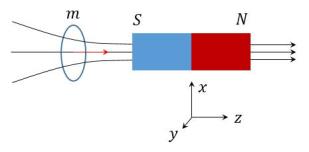 设磁铁a的N极靠近磁铁b的S极,则该磁矩的方向沿z轴正向,与磁铁b共轴,则上面力的表达式中
