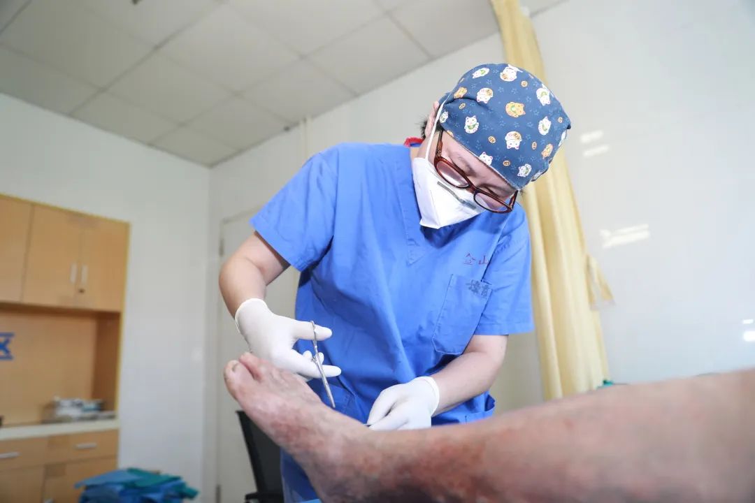 向上滑动阅览每年赴云南和贵州支医是近10年来蔡蕴敏的一项志愿服务项目之一。蔡老师不仅为当地医院送去新型敷料、义诊、进当地困难百姓家庭送医上门,同时在当地医院开设专题讲座---蔡蕴敏公益大讲堂,还现场演示五步工作法处理疑难伤口。虽然紧密的行程安排、高负荷的运转,考验的是她的身体极限,但当地老百姓缺少专业护理、当地护理人员对伤口护理知识的渴求和好学精神也感动着她,更坚定了她传播伤口护理先进理念和技术的决心和脚步。