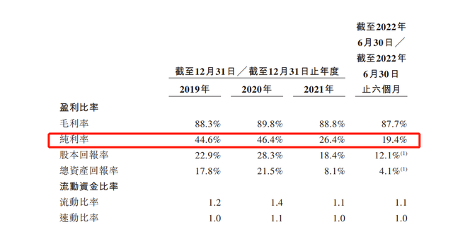 再来看纯利率,2019年、2020年以及2021年,乐普心泰医疗的纯利率分别为44.6%、46.4%、26.4%,截至2022年6月30日纯利率为19.4%,整体纯利率一路走低,值得注意的是2021年纯利率更是跌至26.4%。