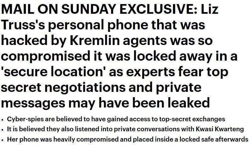 《星期日邮报》独家报道特拉斯手机被黑客入侵