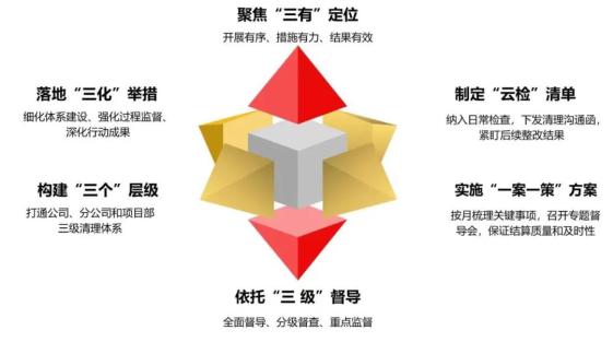 五公司持续提升资产周转速度和运营质量,健全完善公司、分公司和项目部三级清理体系。将专项资产清理监督纳入日常检查工作,制定“云检查”工作清单,对检查结果汇总报告,紧盯后续整改结果,确保清理工作取得实效。制定“一案一策”实施方案,按月梳理关键事项、落实完成情况并召开专题督导会,保证结算推进的质量和及时性。