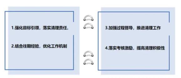 落实3项主要举措。落实主体责任,持续加强清理工作考核激励,将清理工作与各类考核工作相融合;落实“月度简报+分级预警+专项约谈+定向帮扶”的工作机制,推动专项资产清理纵深加速推进;落实专项资产清理长效机制,杜绝低效无效资产前清后增、边清边增。
