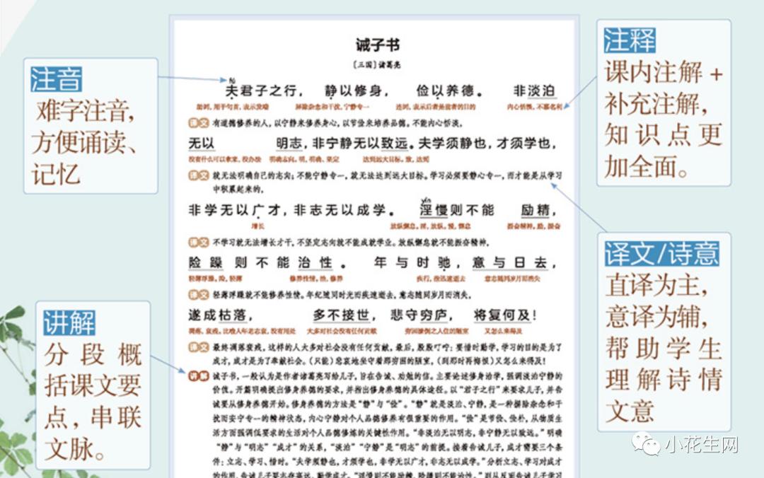 疑难字词句全注;古诗文全文全译;学习重难点全解;知识考点全检测。花友@san098: