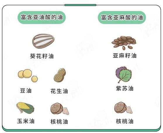 ☞ 首先解决第一个问题:我们要给宝宝吃哪种油呢?科大大建议,一定要选富含亚麻酸或者亚油酸的植物油!
