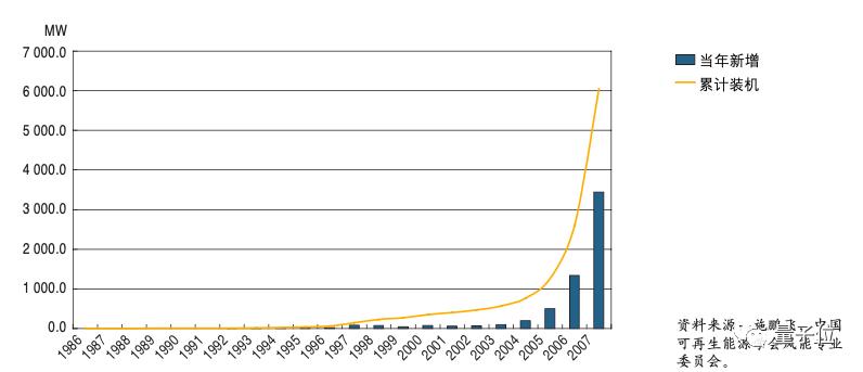 05年颁布的《可再生能源法》推动了行业加速,当年装机容量增长60%,到06年更是翻了一倍。
