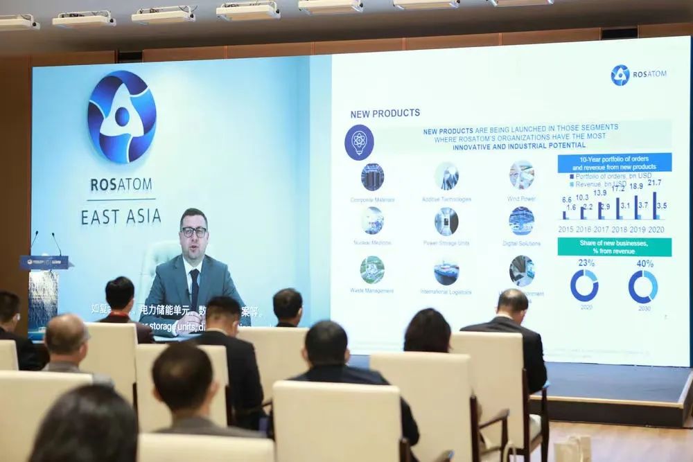 俄罗斯国家原子能集团东亚公司总经理迪马先生代表公司分享近期在核领域取得的进展,国内外建立和运营核电站的经验以及俄中两国在和平利用原子能方面建立合作的最新消息,强调核技术对于保护环境、确保经济增长和消除贫困,推动世界可持续发展的重要作用及贡献。