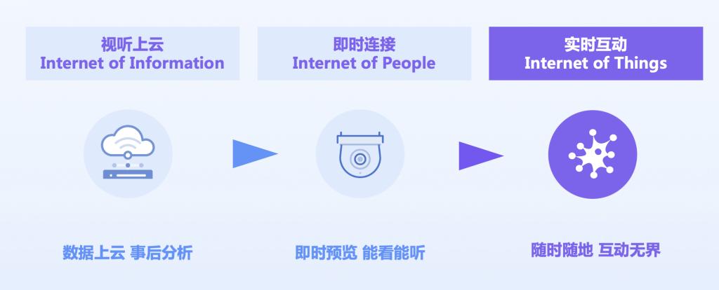 从其较为主要的连接和交互层面来看,侯云忆谈道:“从这个视角看,音视频物联网的演进可以分为三个阶段。”