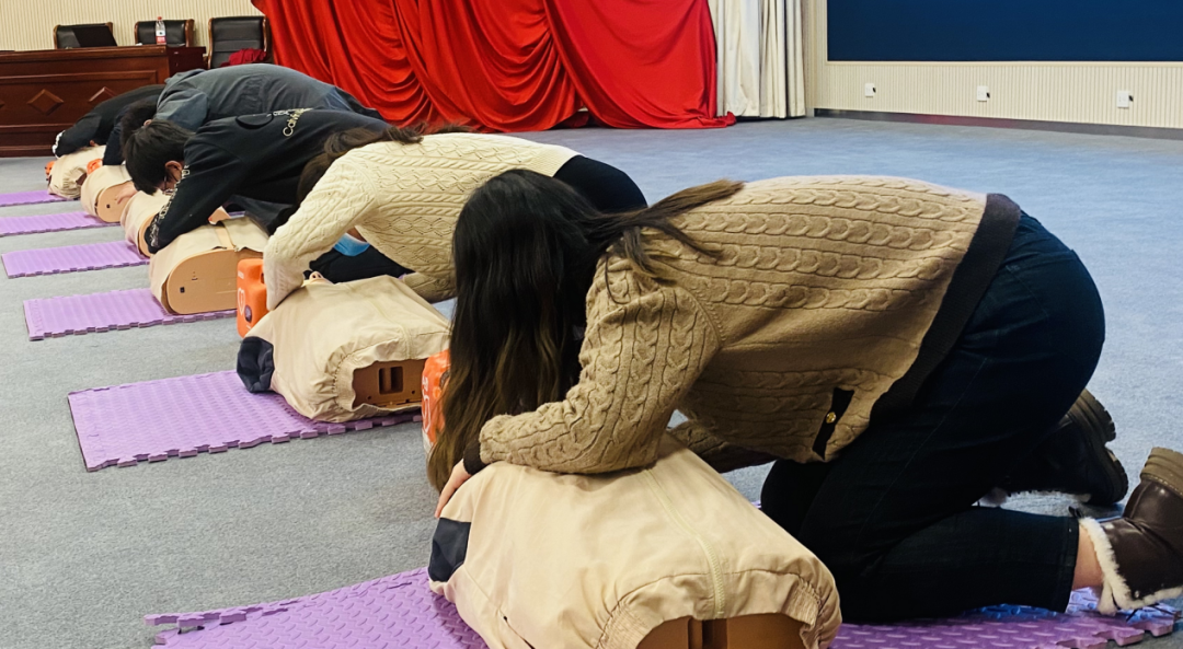 在首期培训中,培训老师通过图文、视频、动作演示等方式,为师生们讲解了心肺复苏术(CPR)和AED(自动体外除颤仪)的相关知识和操作要领,并结合实例对大家的提问和需要注意的要点进行了重点讲解。培训中,大家在老师的指导下,对突发情况下的急救技能进行了全流程操作练习,进一步领会掌握急救技能。参加此次培训的师生纷纷表示,以后在生活中遇到需要急救的突发情况,会更有自信地伸出援手。