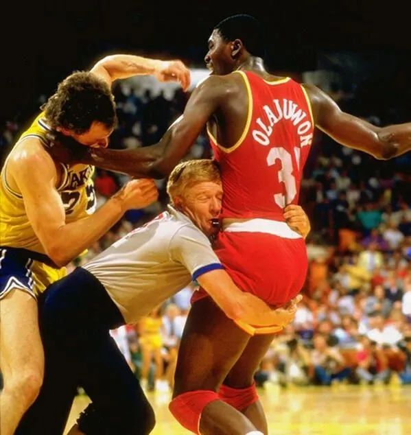 1986年西部决赛第五场,大比分1比3落后于火箭的湖人背水一战,然而他们对奥拉朱旺束手无策,大梦此前两场一共砍下了75分。到了第四节,帕特-莱利孤注一掷,派上了库普切克,用各种小动作骚扰奥拉朱旺。