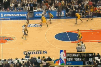 球在半空中差点被杰伦-罗斯断掉,好在约翰逊反应够快,抓住了皮球。面对安东尼奥-戴维斯的防守,约翰逊先是向右做了一个试探步,然后用假动作晃起了对手,最后向左运了一步,拔起投篮,与此同时,柯西的哨子响了。皮球钻进网袋的瞬间,2万名现场球迷从椅子上跳起来,麦迪逊花园沸腾了起来,当镜头转向雷吉-米勒时,这个见惯大场面的冷血杀手一脸茫然。