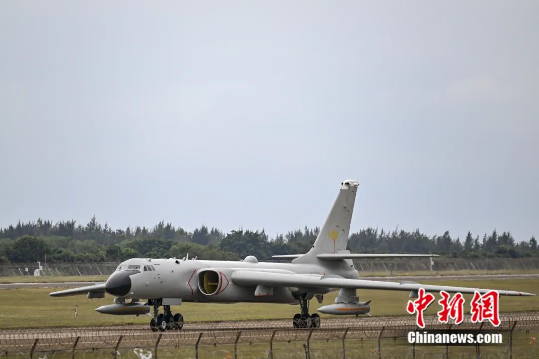 图为空军轰-6K战机抵达珠海金湾机场。中新社记者 陈骥旻 摄轰-6K是空军向“战略空军”转型的标志性装备和构建战略打击能力的关键武器平台。
