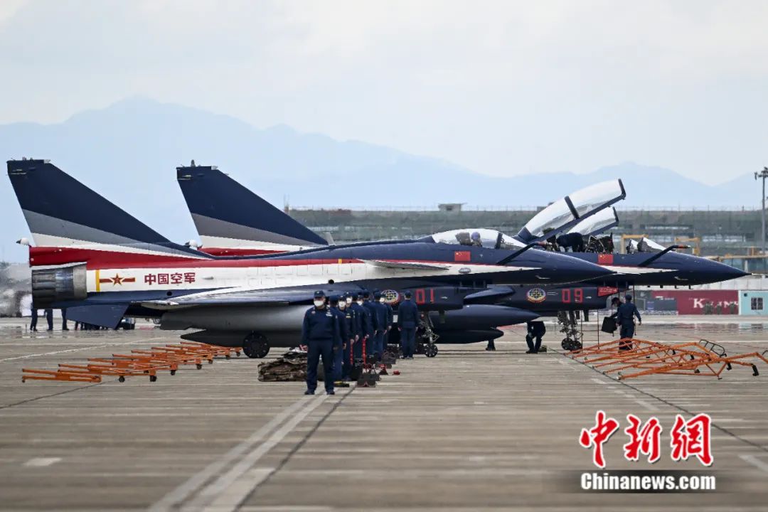 11月3日,中国空军“八一”飞行表演队8架歼-10表演机全部抵达航展现场。