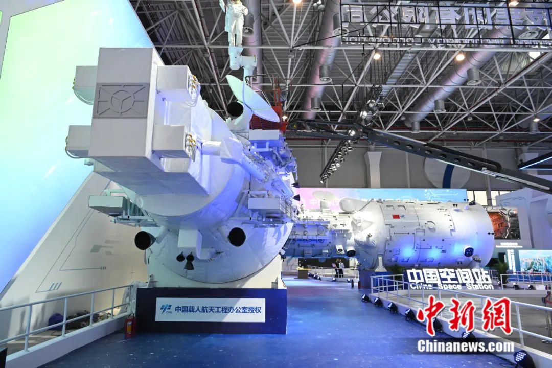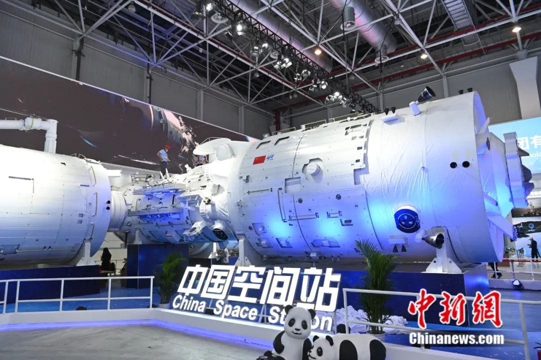图为中国空间站1:1“同款”展示舱。中新社记者 陈骥旻 摄本届航展中国航天科技集团将在珠海专门开辟出专区,以1:1实物仿真的形式全面展示中国空间站组合体,与太空里的“天宫”遥相呼应,让观众在地面就可以近距离了解“太空之家”。