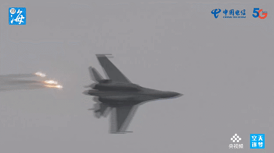 歼-16 是首次在中国航展飞行表演,在空中上升横滚下降急转,跃升大速度通场。