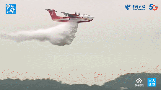 满载着水的“鲲龙”随后进行了12吨投水演示,12吨水倾泻而下,全面展示新状态全构型AG600M灭火任务系统功能。