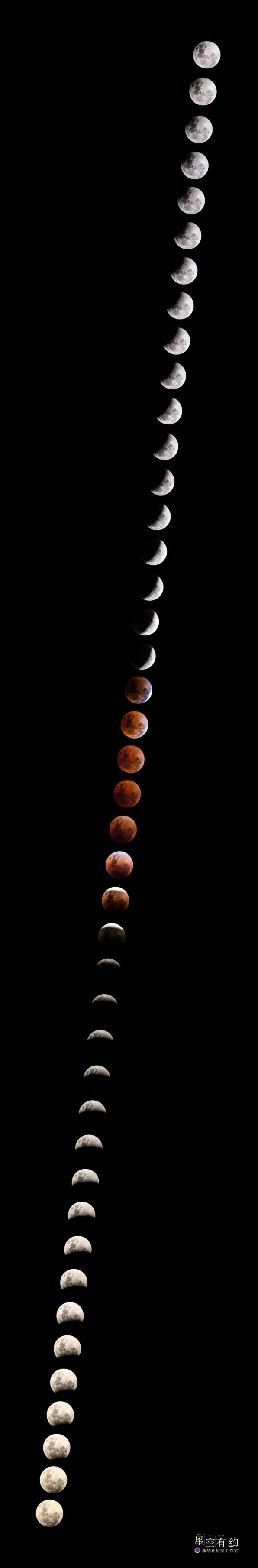 如何拍制一张从初亏到复圆的“月食项链”?王俊峰表示,用单反相机拍摄时,需要使用三脚架和中焦镜头。根据天文类App的提示,提前预测月食的轨迹,后期再使用叠加软件,就能得到一张有趣生动的“月食项链”图。拍摄时,最好选取一些有特色的背景物,比如大桥、高塔、古建筑等,将更有观赏价值;如果条件许可,也可以用生动的人物做前景。