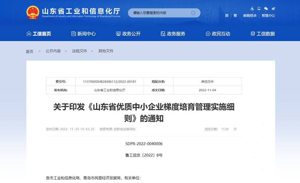 放眼未来,优质中小企业培育的机遇和压力并存,必须加快补齐精准服务和要素保障等短板,持续用力、久久为功,始终保持专精特新中小企业培育领先发展。为进一步做好全省优质中小企业梯度培育管理工作,近日,山东省工业和信息化厅制定印发《山东省优质中小企业梯度培育管理实施细则》(以下简称《细则》),自11月1日起实施,有效期三年。