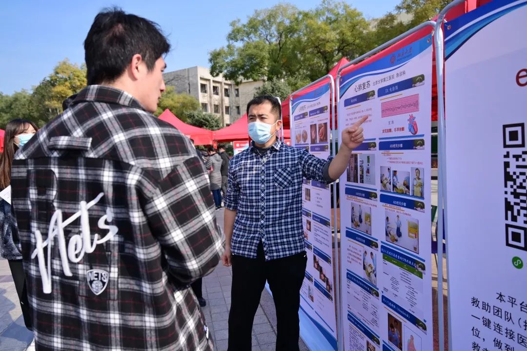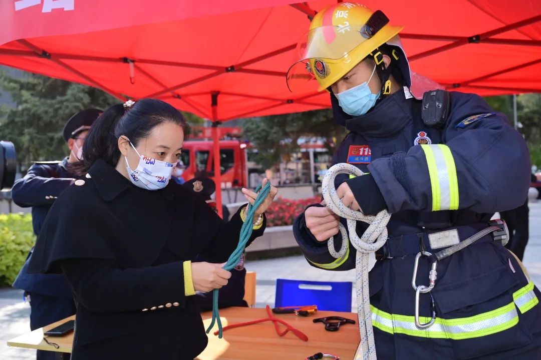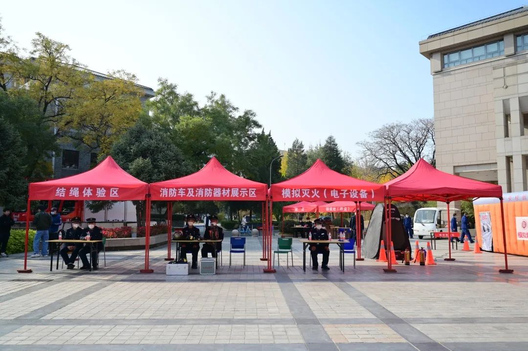 北大师生员工在结绳体验区、消防车及消防器材展示区
