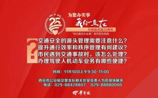 ▲11月10日(今天)上午9时30分,华商报改版25周年——“我为群众办实事”系列民生热线活动第二十三场启动,西安市公安局交警支队宣法处、秩序处、事故处、车管处相关负责人做客华商全媒体直播间,通过多种方式解答市民关心的问题。如果您有关于交通管理方面的问题,请于上午9时30分至11时,拨打“我为群众办实事”系列民生热线活动专属热线029-88428807及华商报新闻热线029-88880000。