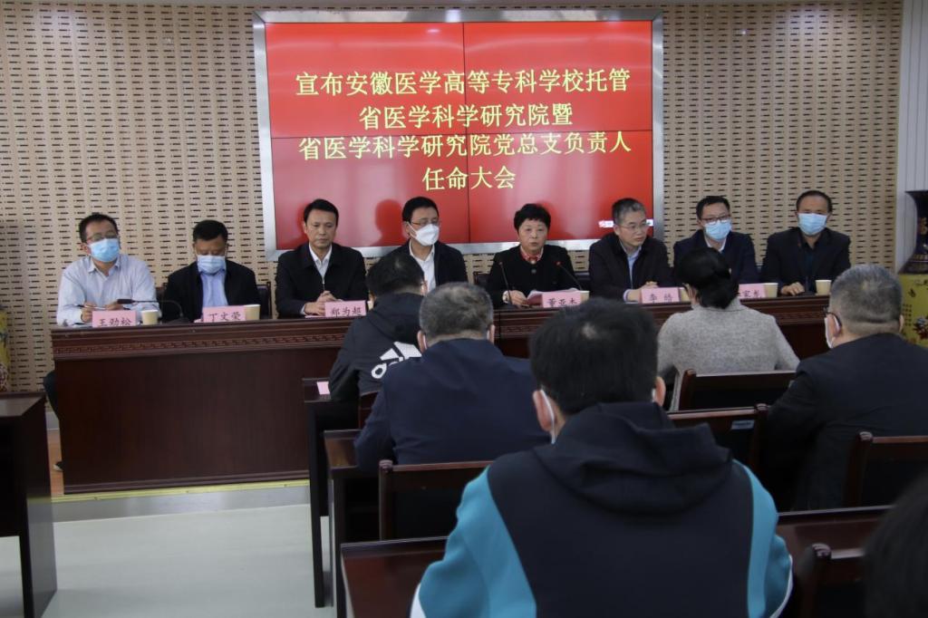 11月3日,安徽医学高等专科学校托管安徽省医学科学研究院暨安徽省医学科学研究院党总支负责人任职大会在安徽省医学科学研究院召开。