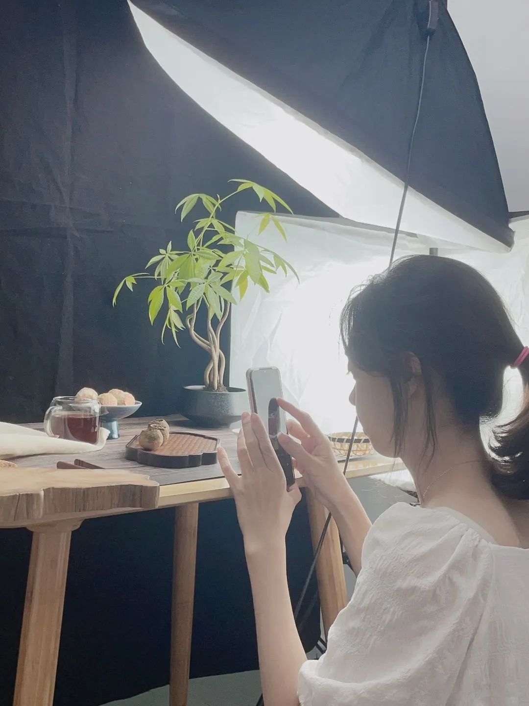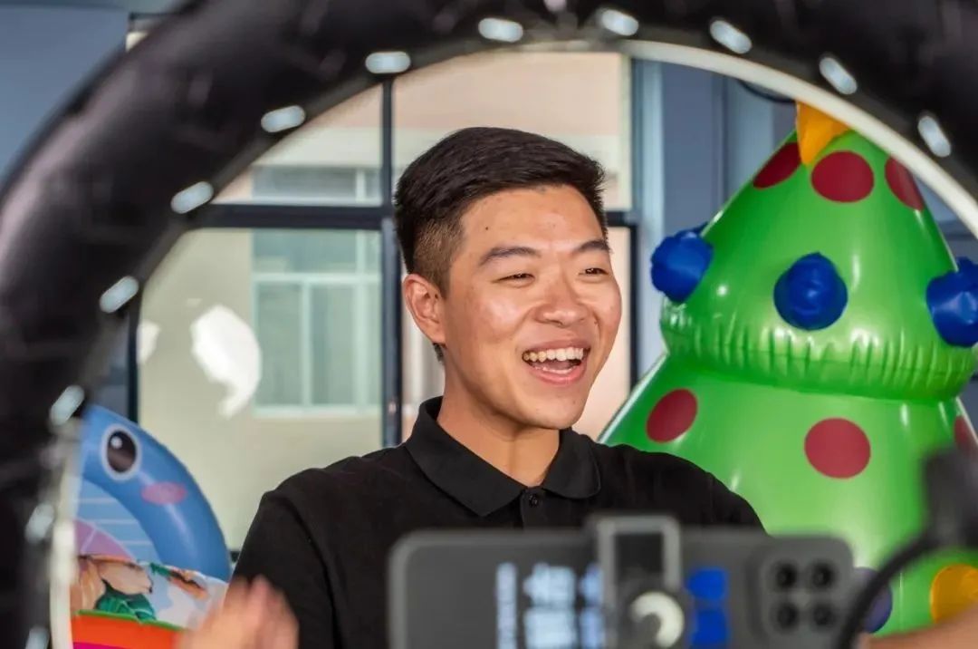 ▲直播带货、拍摄产品中