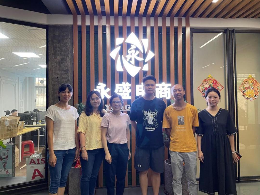 ▲与电商专业老师合照(右三)国权创立的江门市永盛电子商务网络技术有限公司,主要销售家用研磨机、养生烧水壶及烘焙周边配件等厨房小家电,通过淘宝、天猫、京东、拼多多等多个平台进行线上销售,同时也兼顾跨境电商。目前公司一共有40多名员工,通过8年的行业积累和精耕细作,得到了客户和同行们的认可与信任。