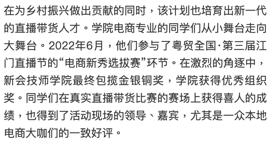 每年输出电商专业学生100余人成功搭建新会区农村电商产业园打造电商新星