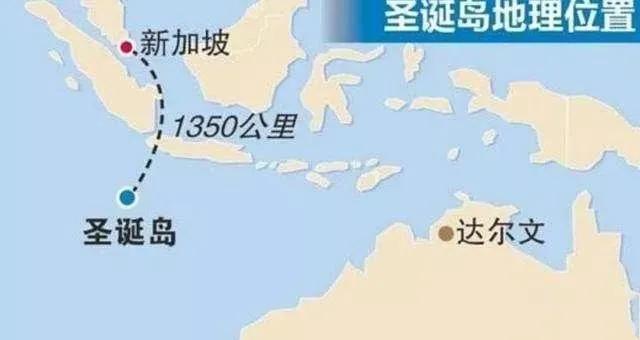 从地图上看,圣诞岛不仅距离新加坡远,离澳大利亚西部的最近距离也有1400公里。