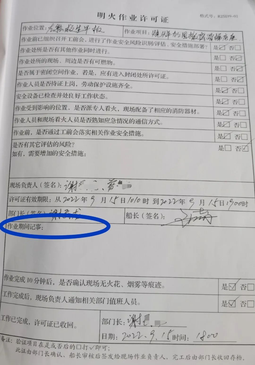 不规范的安全作业记录