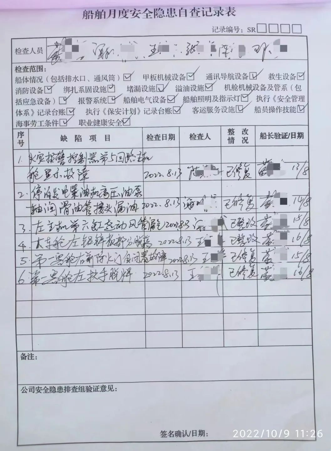 按月开展对所属船舶自查