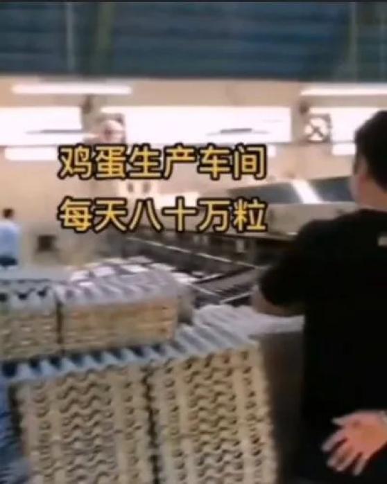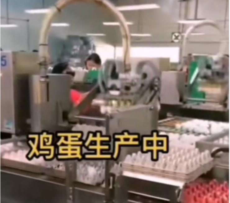 而在网传鸡蛋生产车间的画面上