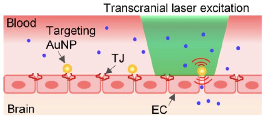 金纳米颗粒(AuNP)与细胞紧密链接。图片来源:《Reversibly Modulating the Blood–Brain Barrier by Laser Stimulation of Molecular-Targeted Nanoparticles》